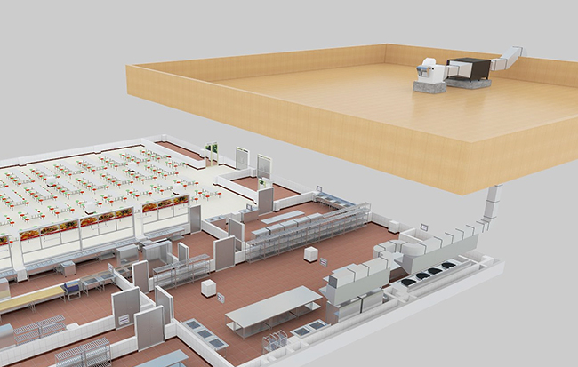 4.分区控制:商用麻豆视频免费下载采用分区控制的安装配置方法,即餐厅麻豆视频免费下载分为几个区域,每个区域根据排气量和面积和空气质量分配新鲜空气总量,通过直径防火阀控制。