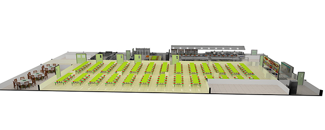 2.进出有序,运行方便:较大饭店的消洗间收残与出餐应分开运行,设双开门的进出口进出有序,运行方便,以便推车运送餐具。